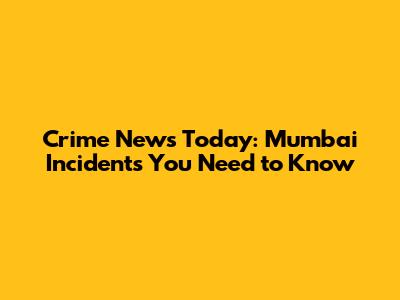 Crime News Today: Mumbai Incidents You Need To Know