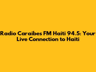 Hey there, music lovers and news junkies! Are you looking for a direct link to the heart of Haiti? Look no further! This article is your ultimate guide to Radio Caraibes FM Haiti 94.5, the station that keeps you connected to the vibrant culture, breaking news, and the latest hits from the island. We'll dive into how you can tune in live, explore the station's history, and discover why it's a must-listen for anyone interested in Haiti. Get ready to experience the sounds of Haiti, right at your fingertips!