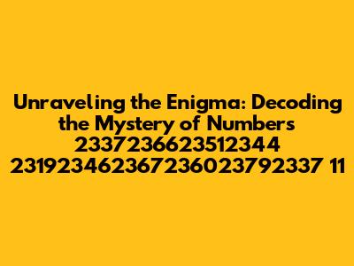 Unraveling The Mystery: Numbers 2337236623512344 231923462367236023792337 11 Explained