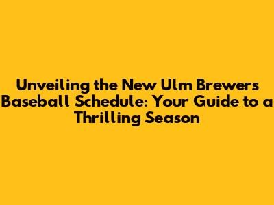 Unveiling The New Ulm Brewers Baseball Schedule: Your Guide To A Thrilling Season
